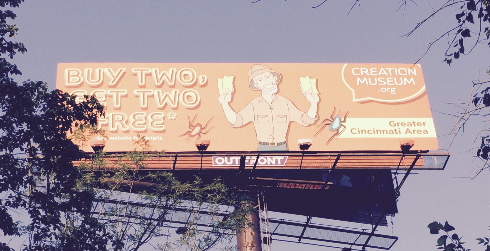 Seriously, the thought (at least somewhere inside this group, though certainly not pervasive throughout the group) is, “If we are going to lie, it might as well be a whopper.” (They bend that way with the statement “Greater Cincinnati Area”. This sign is 100 miles from Cincinnati, and facing the traffic with Cincinnati at its back. (they would have to turn around to take advantage of this offer!) The “museum” itself, is 16 miles or so from where Cincinnati touches the Ohio River, but it is out in the boonies in KY (maybe coincidentally only, there is a casino in Indiana, across the river and not far, at least as compared to Cincinnati. But I diverge.)