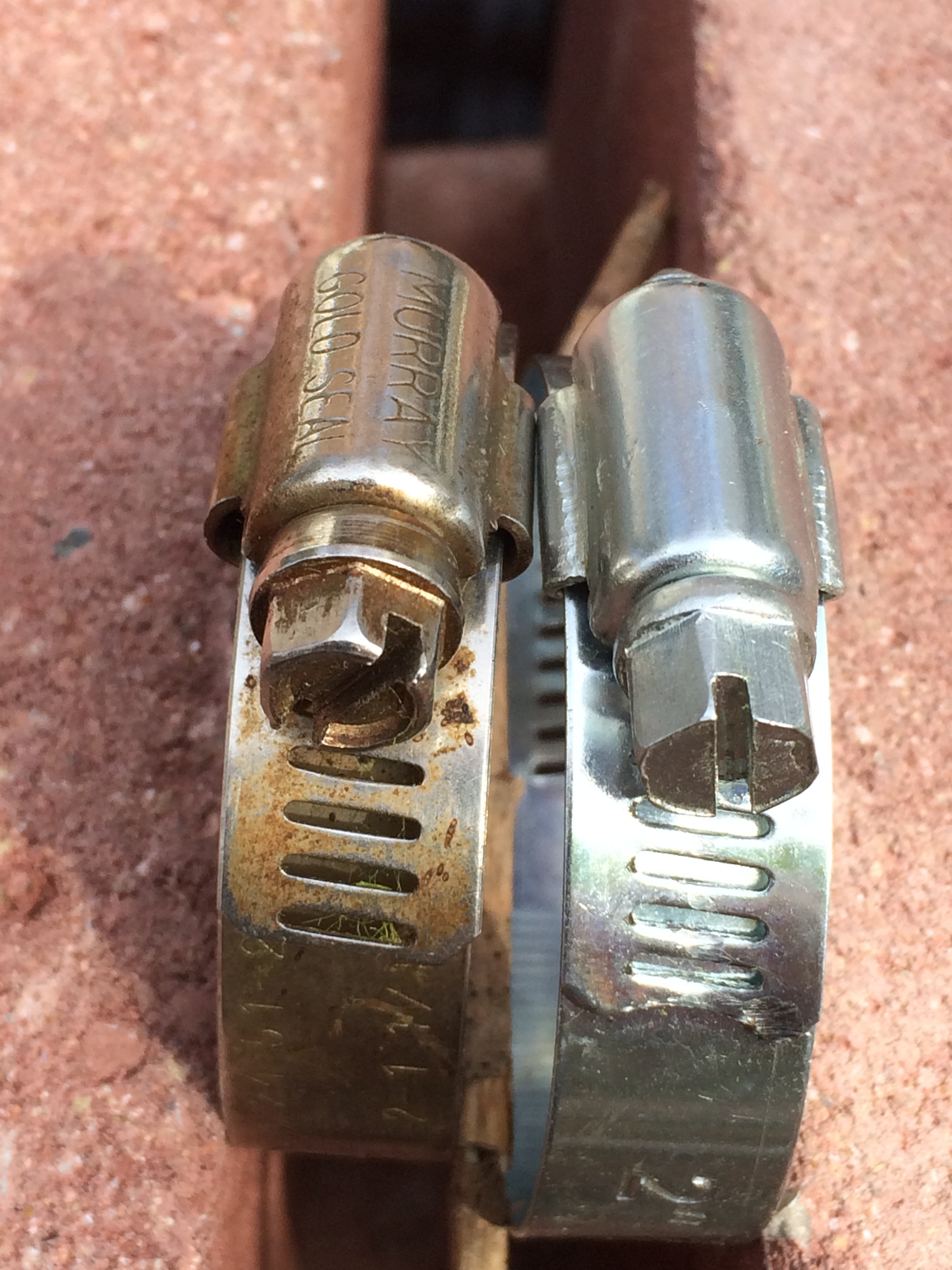 Here is the summary: America was great when we were making products like this old clamp. (Note, the old clamp has “Murray Gold Seal” stamped on it. The new clamp has no manufacturer claiming it, or suggesting any level of quality.) The Trump card’s version of great will be the new version. One that may work in its intial application, but one that is not expected to work repeatedly for its expected life. The new version is much cheaper to make, both in the cost of the good of which it is comprised and the time and effort it takes to spit it out. Also, the new version can be made almost entirely by machine. The bean counters love it and justify it all day. There are probably equations in the record upon which they rely and which show the force that can be safely applied to the screw slot. Note that it is deeper than the old version, and that it does not have the reinforcing rim around the head of the drive. The equations are at least for the first use, and might be theoretical for many uses, but any such equations for the alloy steel version would always be for many more applications, and that does not even take into account the wear between two disparate materials comprising the screw mechanism and the band (as far as hardness and various stress allowances).